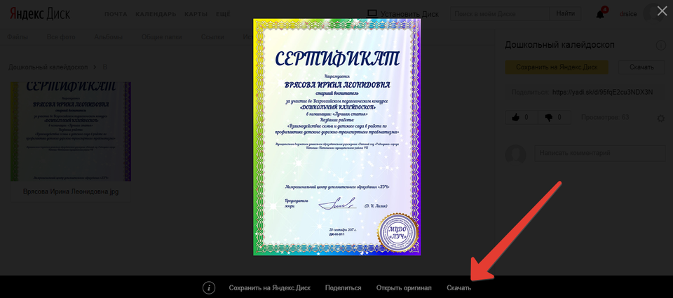 Аналогичным образом скачиваются Свидетельства о публикации, Благодарственные письма, Сертификаты кураторов и организаторов.