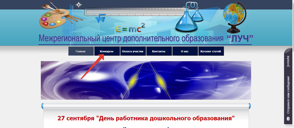 В главном меню нажать на раздел «Конкурсы»